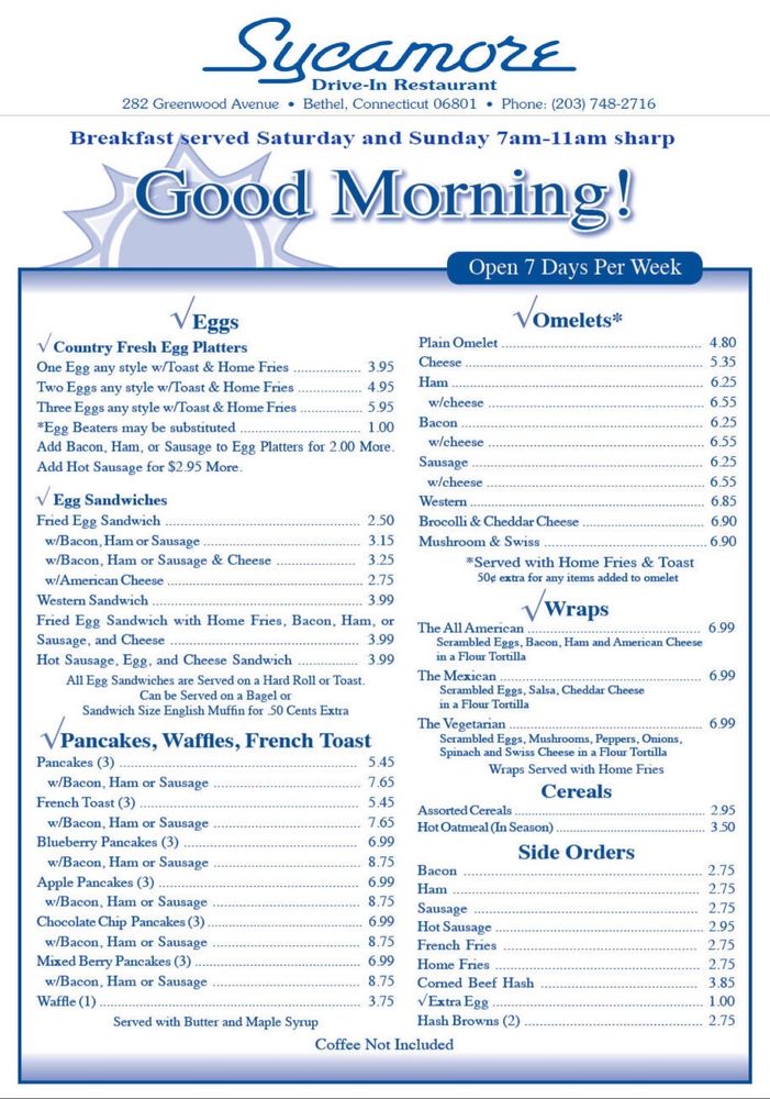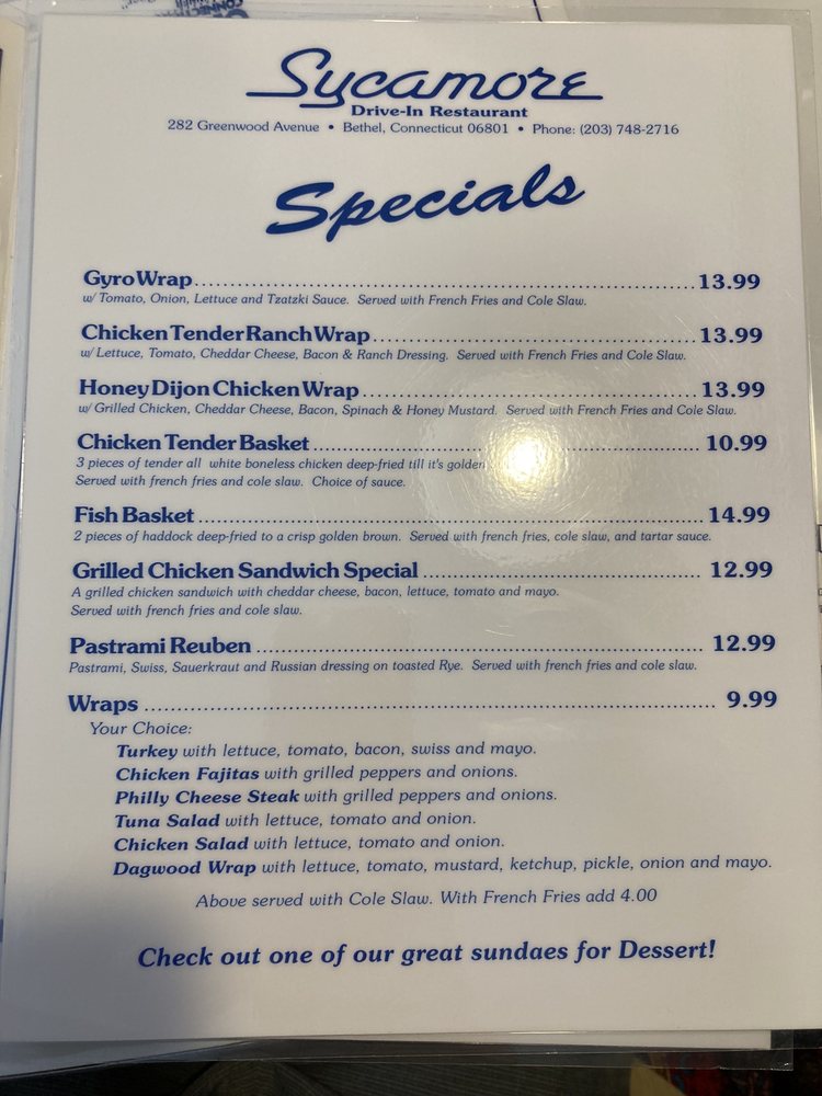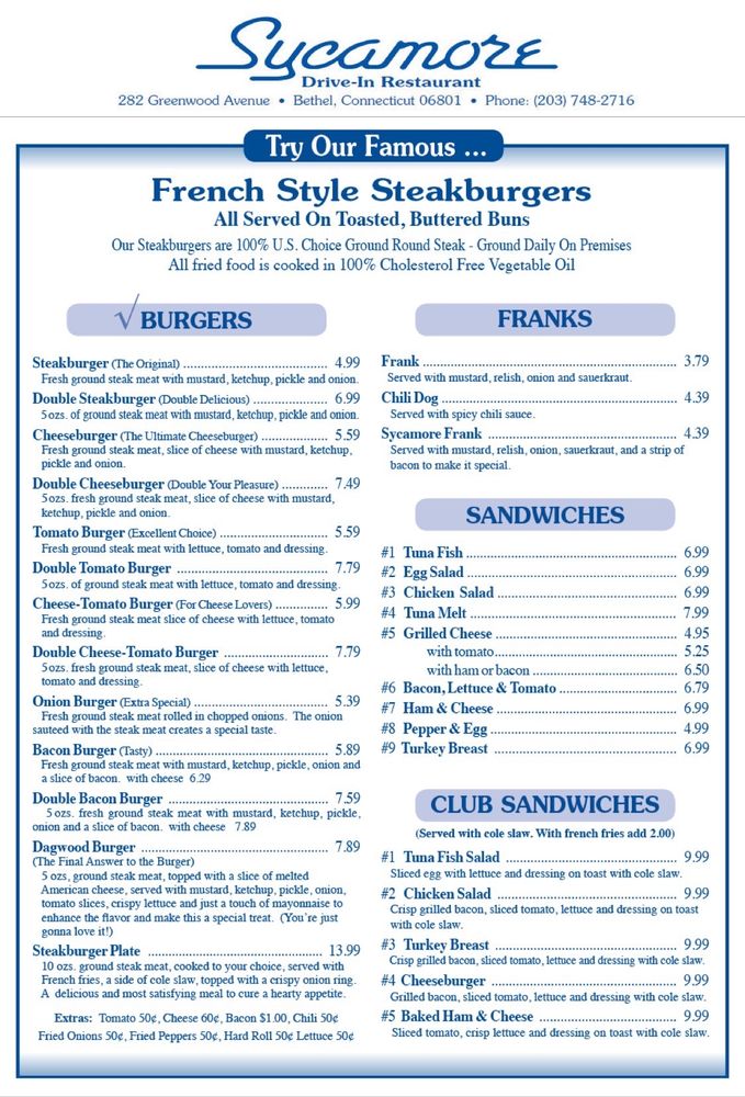 Welcome to Sycamore Drive-In, a nostalgic gem nestled in Bethel, CT, where classic American diner fare greets you with a smile. This beloved eatery, located at 282 Greenwood Ave, blends a retro vibe with modern comfort, making it the perfect destination for breakfast, brunch, or a late-night burger fix.